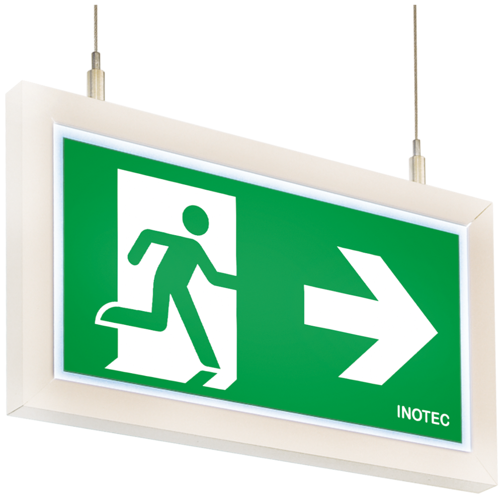 Hoogwaardig vluchtrouteaanduiding armatuur, gemaakt van hoogwaardig gepoedercoat aluminiumprofiel. Zeer vlak en strak design met een perfect homogeen uitgelicht pictogram door geoptimaliseerde LED technologie met een lichtopbrengst > 500 cd/m². Zeer vlak en strak design en leverbaar in elk gewenste RAL kleur.
