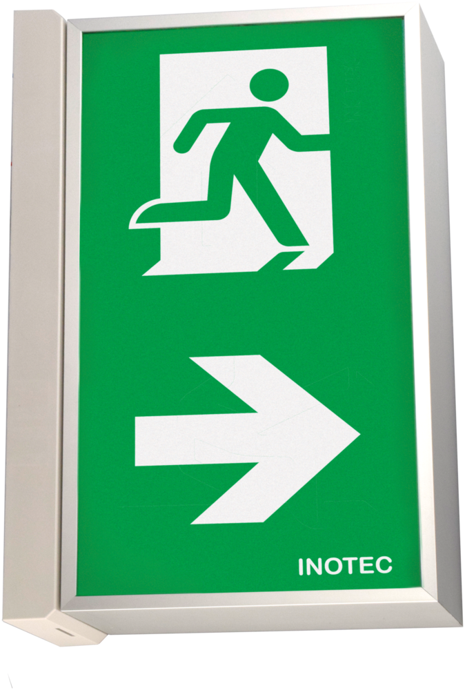 Dubbelzijdig vluchtrouteaanduiding armatuur gemaakt van hoogwaardig aluminium profiel. Bijzonder vlak design met een perfect homogeen uitgelicht pictogram door geoptimaliseerde LED technologie met een lichtopbrengst > 500 cd/m².