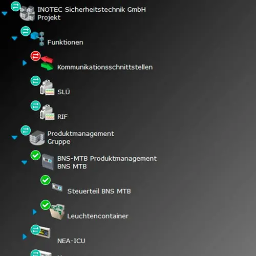 The ease of use was the main focus when developing the visualisation software INOView. Hereby the intuitive user interface was created with clearly structured system overviews and description texts. At just a glance, the user recognises the overall condition of the emergency lighting systems and may optionally quickly take measures to guarantee the safety of people in the building. The INOView software ensures transparency and provides comprehensive and detailed information on the overall and detailed system status.