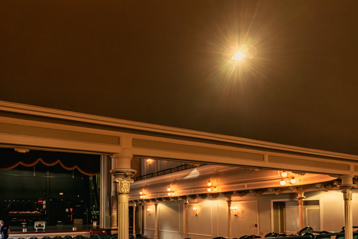 Noodverlichting en algemene verlichting vormen één geheel in sfeer en uitstraling. Ze dimmen mee voor, tijdens en na elke voorstelling, zodat veiligheid en beleving naadloos samenkomen.
