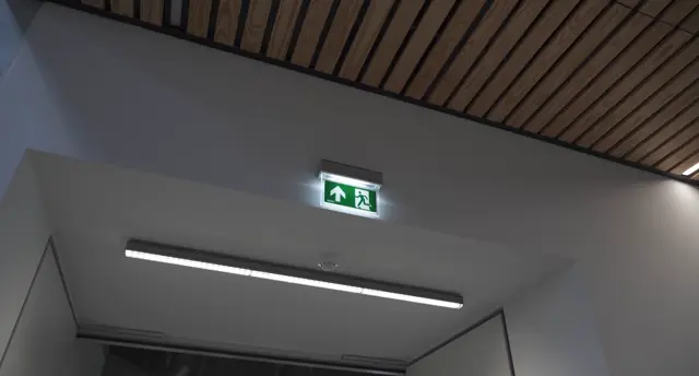 Het INOTEC CPS220 Centrale Noodverlichting systeem is in het gehele pand geïmplementeerd en voorziet in een volautomatische individuele bewaking van alle LED vluchtrouteaanduiding- en vluchtrouteverlichting armaturen waarbij tevens eenvoudig diverse algemene Dali lichtlijnarmaturen in het Atrium (o.a. geen batterijen op hoogte in het Atrium) door systeemintegratie een dubbelrol hebben gekregen.